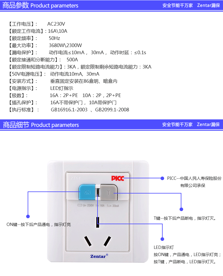 漏電保護墻壁型開關ZT6-10A/16A